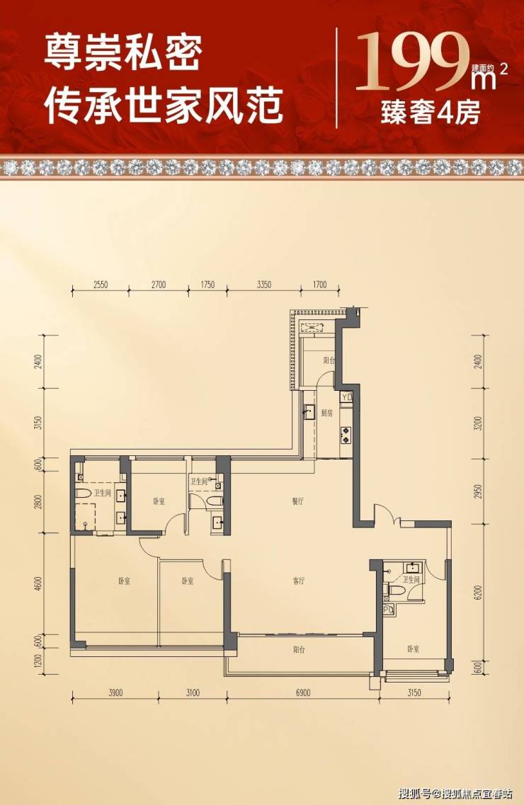 建面约124-199㎡臻奢4房,稀缺大平层!
