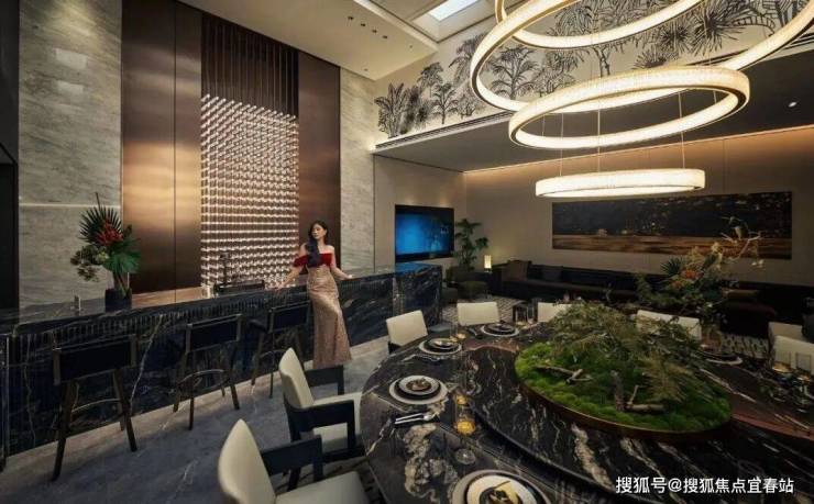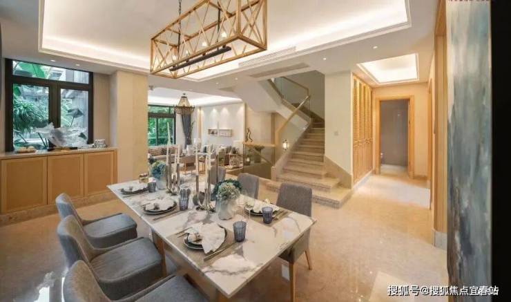 约十米开间的会客厅,9米的落地窗,提供无限量采光和开阔视野的奢阔空间,给家的团圆更多想象,对孩子来说,在没有束缚的空间里自由地成长,同时也朋友相聚的会客厅。