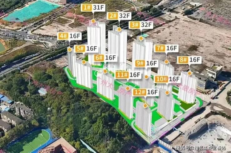 项目规划了12栋楼,其中有3栋31-32层的高层住宅,2T4,约368套货量;9栋16层高的小高层,2T2,约288套货量。