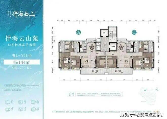 南向5.1米宽开间大客厅、四卧室观湖海景