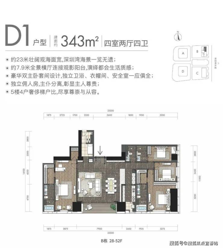 深圳湾沿岸三座标志性高楼巍然屹立,分别是春笋大厦(390米)、莱佛士酒店(350米)以及本项目(305米),彰显了其作为城市地标的独特价值。此外,本项目坐落于深圳湾一线滨海区域,享有无可比拟的居住优势,在整个深圳湾片区内堪称独一无二的理想居所。