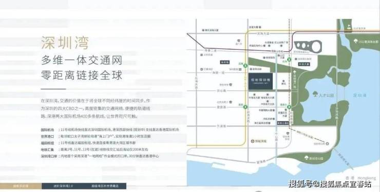 交通方面:恒裕深圳湾项目距离2号、11号地铁线交汇站后海站不远,可通过11号线直达福田枢纽,快速连接粤港澳大湾区城市群,同时11号线是机场快线,可直达深圳国际机场,还有港深西部快线支线直达香港国际机场。