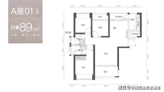 约89㎡精装3房,刚需改善性价比之选:东南/西南朝向