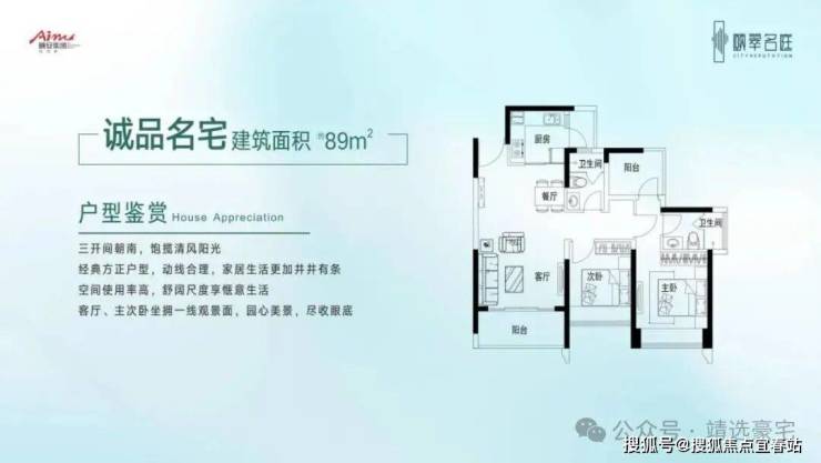 [精粹空间] 建面约88-90㎡经典人居产品,户型方正实用,户户朝南,超高使用率,超低梯户比,打造舒适居家尺度。