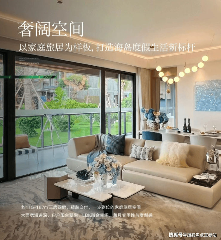主力产品包括约115㎡小高层及115–167㎡度假洋房,全线精装交付,配备约2.4米进深、最大约42㎡的超阔阳台(部分户型)、LDK融合空间等专为度假生活定制的设计,真正实现从“偶尔度假”到“长久旅居”的可能。