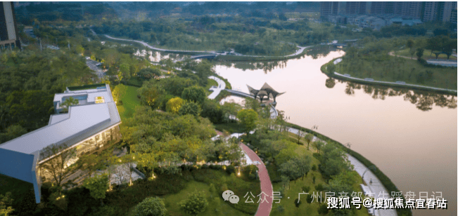传统湖居生活只是“湖畔近居”、”远眺湖景“,而越秀·御湖台首提”融湖于园“理念,将住区与湖园无界相连,居湖心园中,览风景无界