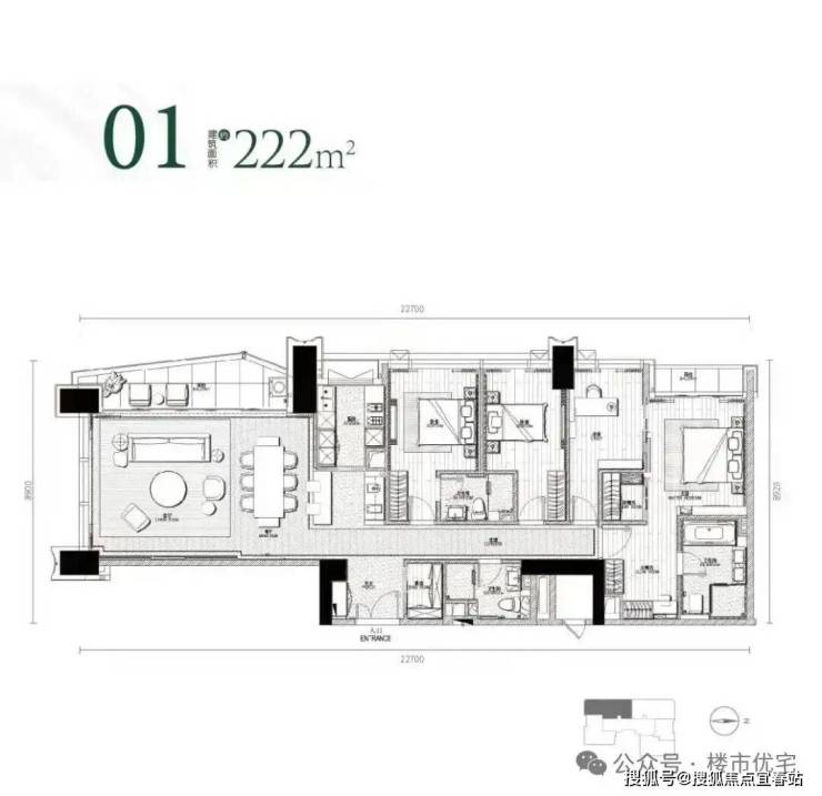 北塔商办产品:32层 3梯4户,2个单元,189套,