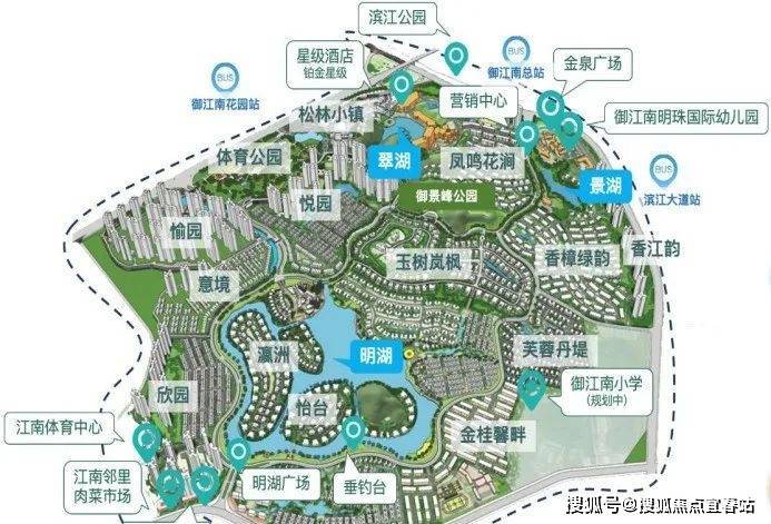 项目邀请国际顶级设计团队进行规划设计,在规划上保留了大量的原生态资源。斥资20 亿重金打造“1 江 3 湖 4 公园”的大园林景观:10 里的北江景观资源,三大原生态湖泊,邻近销售中心的 2.8 万㎡景湖;紧邻江南汇酒店 2 万㎡的翠湖;还有面积最大 21 万㎡的明湖;围绕明湖,还建有一个明湖公园,里面有一条 3 公里的环湖自行车道。