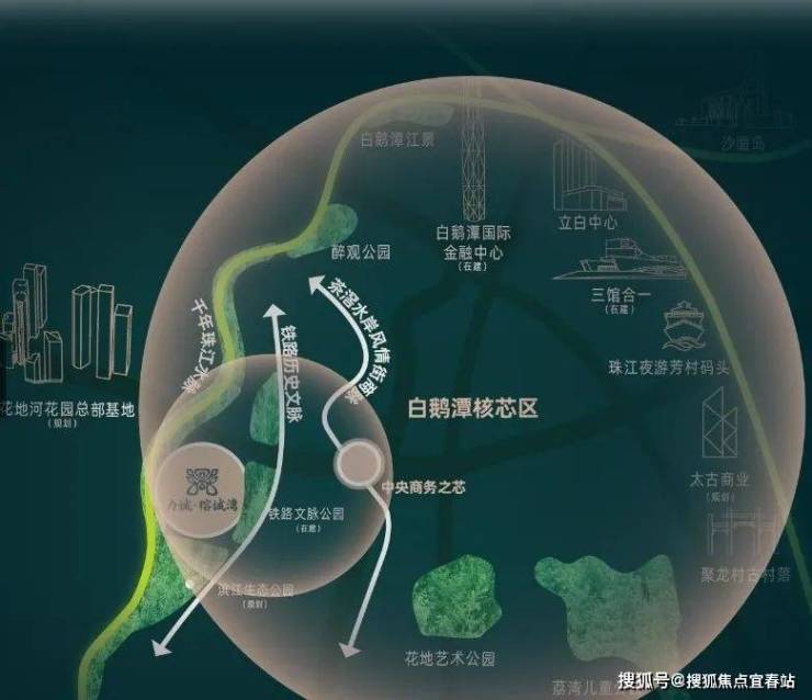 【白鹅潭核心区发展】 白鹅潭地区作为广州主城核心区,规划投资约2500亿,定位为千亿经济势能,形成东西两翼黄金三角格局,包括地标项目如白鹅潭国际金融中心等。