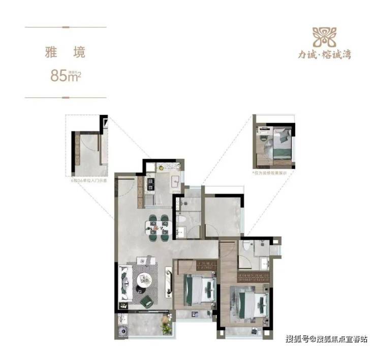 力诚·榕诚湾目前主推6#及7#,主打户型有建面约85㎡三房、97㎡三房、138㎡四房、以及165㎡四房。