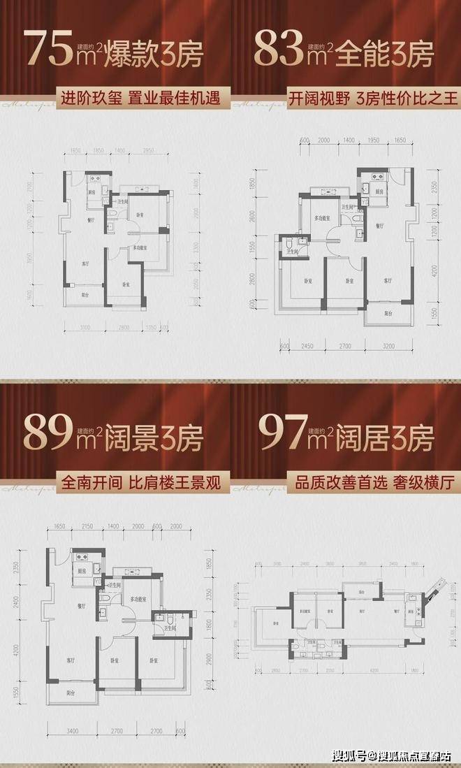 约75-97㎡全能3房/约110-199㎡臻奢4房,进阶鸿荣源高端玖系圈层绝佳机会‼‼