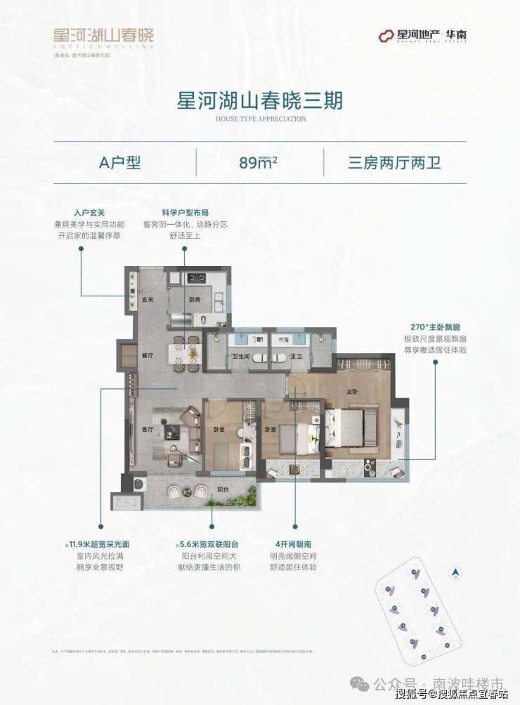 星河湖山春晓三期将首推4栋,产品共有3种户型,分别为建面约89㎡三房、建面约116㎡四房、建面约126㎡四房。