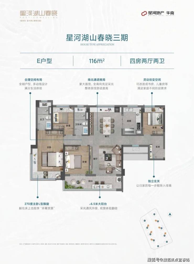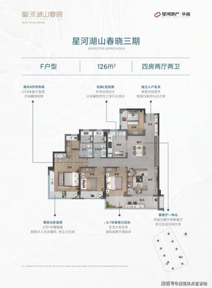 最后,我们看看星河湖山春晓三期的明星户型,建面约126㎡的4房2厅2卫。