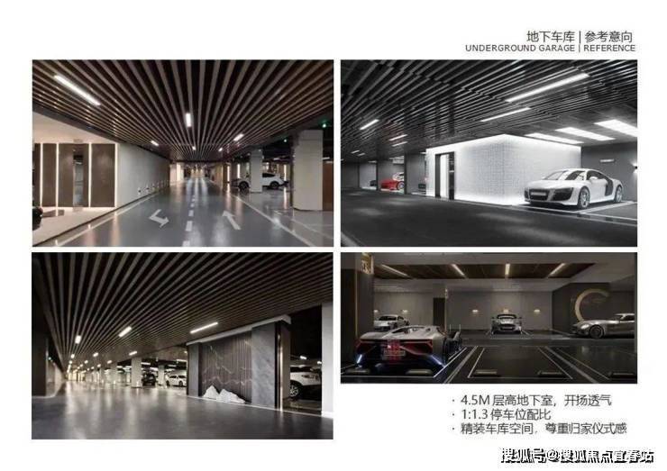 半地下车库采光好,四周及内部采光井均可采光,层高4.5米明显优于一般车库;车位大小2.4x5.3米。