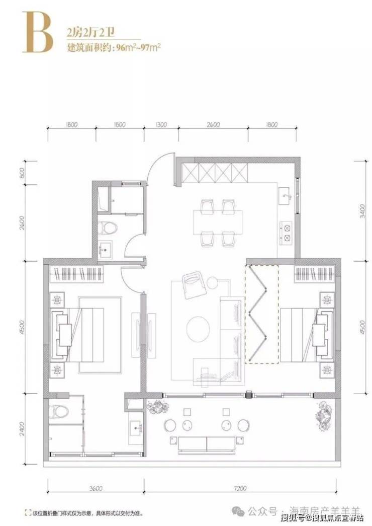 在售户型:95㎡ 两房两厅两卫