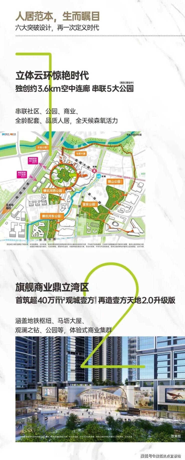 5大公园融入社区,起步即城市级公建,造就超越当代的都市活力地标环;统合历史文脉、自然山水、城市建设、多元业态,构建全生命周期的城市中心理想典范。