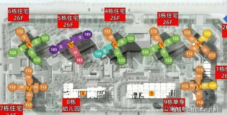 规划7栋22-26F住宅,还有一栋多层公寓和商业。大约有600多套105-188㎡纯4房商品房,2T4户,规划停车位897个。
