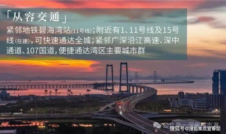 交通方面:距离11号线碧海湾站直线距离约500米,步行10分钟可达,30分钟就能直达福田CBD。而且距地铁1号线西乡站直线距离约1000米。
