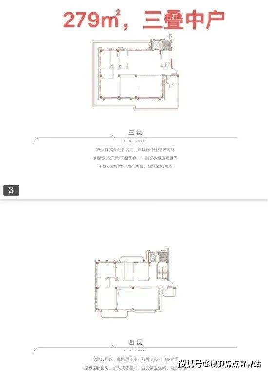②三叠的上叠面积为285㎡,首层花园面积区间约为27-90㎡,天台面积约为108㎡实用率达到178-274%;