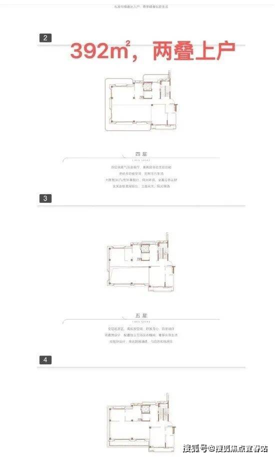 ①其中,两叠的上叠面积为392㎡,花园面积区间约为123-298㎡,天台面积约为93㎡,实用率193-259%;