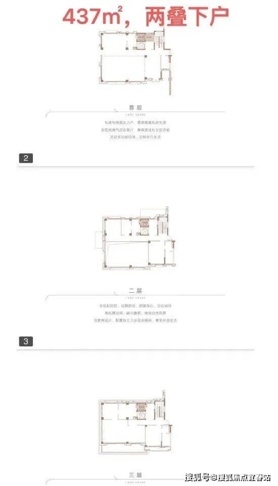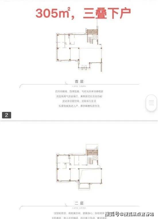 下叠面积为305㎡,首首层花园面积区间约为233-517㎡,实用率238-355%;三叠户型最高可做到6房。