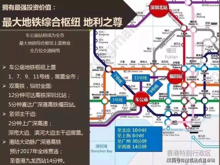 1、7、9、11号线车公庙站地铁枢纽,福田高铁站14分钟快速通勤香港;