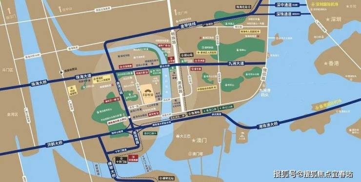 项目3分钟接驳金琴快线直达横琴、深珠通道(规划中)、深中通道(建设中);3分钟到达港珠澳大桥上桥口,一桥连港澳;8分钟抵达珠海站,一轨通横琴、机场、湾区各市;10分钟通拱北、湾仔两大口岸,无缝衔接珠海、澳门、香港三大国际机场;掌握时间的优先权,自由来往大湾区。