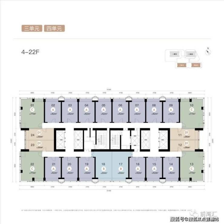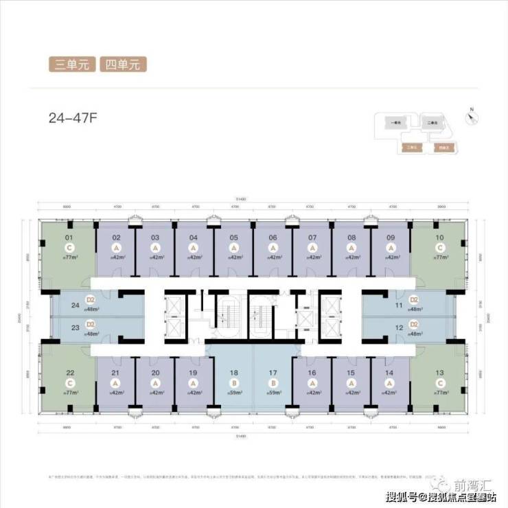 总 楼 层 :1/2单元43层,3/4单元48层