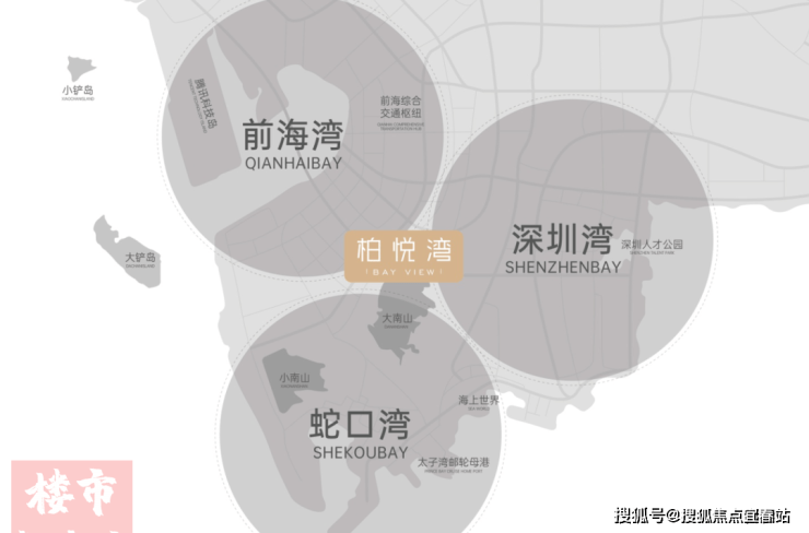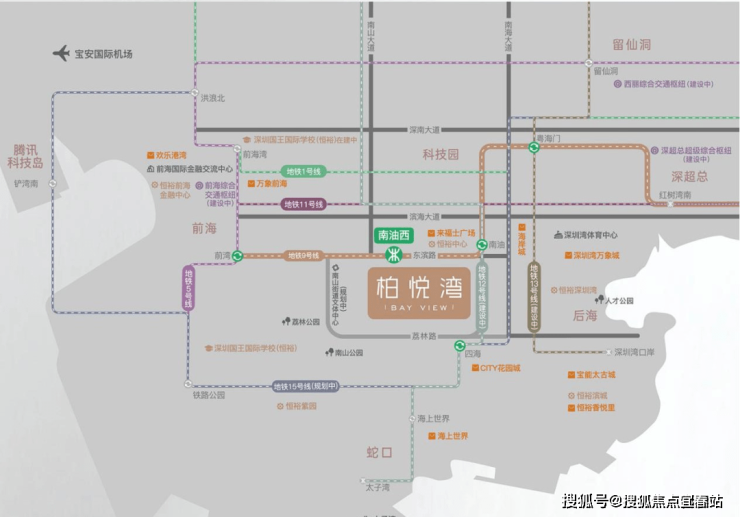 柏悦湾除三湾环抱之外,周边还有七大总部基地环绕,这七大总部基地的名字,每一个都如雷贯耳——后海、前海、蛇口、深超总、科技园、腾讯岛、留仙洞。