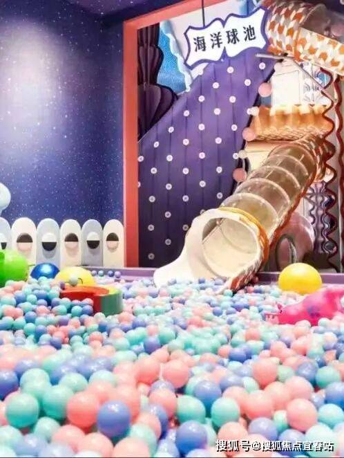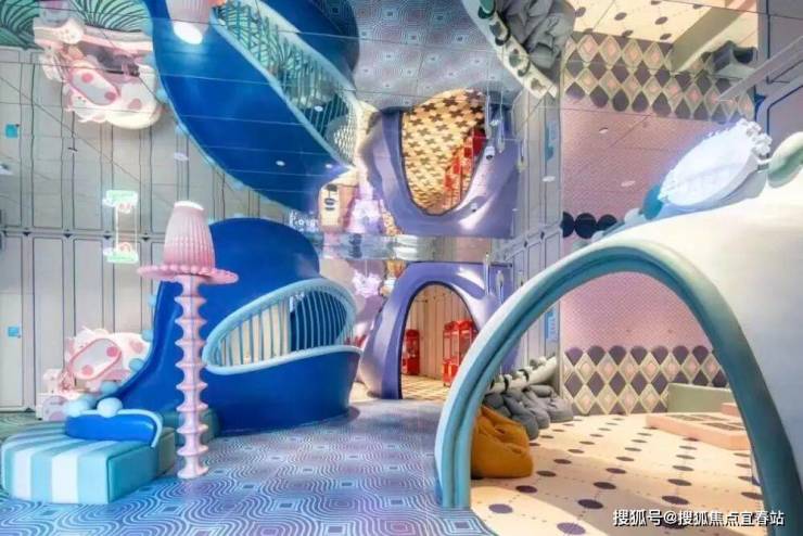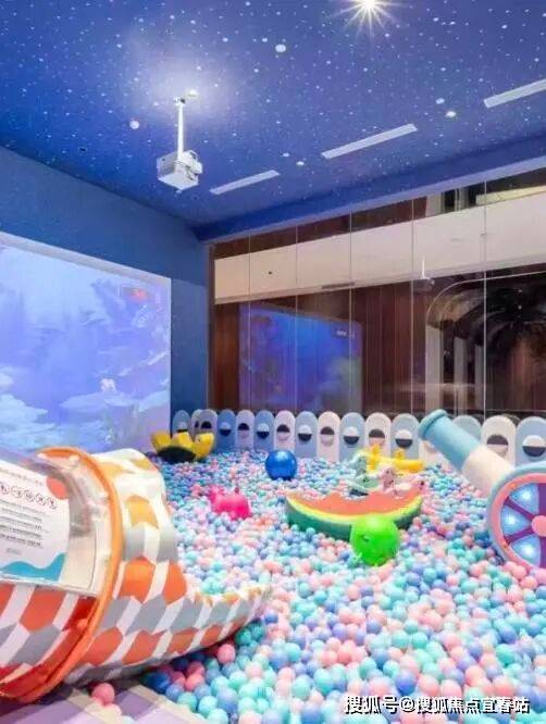 含水母主题互动区、马卡龙色系、海洋生物造型设施。海洋球池、滑梯、攀爬架、投影互动区等,部分区域设“鲸奇小镇”亲子课程等。
