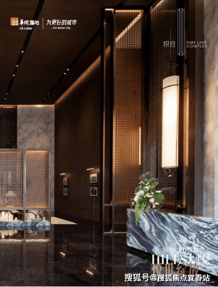 悦府用材严苛,公建化的外立面,其中玻璃+铝板幕墙覆盖面积超95%,是普通立面成本的2-3倍,不但颜值非常高,而且历久弥新。而建筑内部,大面积使用故宫同款汉白玉、雪山银狐等奢石,尽显高贵。