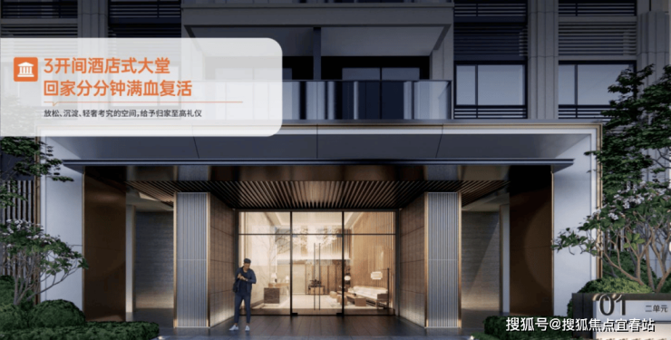 23米艺术落客大门+13.6米铝板入户大堂,堪比五星酒店。