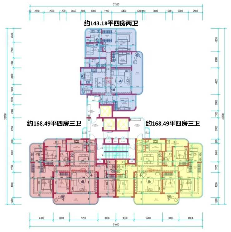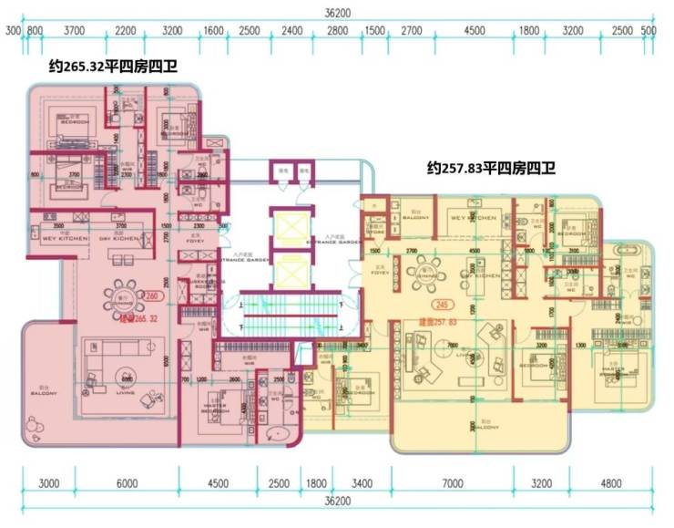 小区内共有11栋(12个单元)楼,户型方面为约143-160-185-245-260-320㎡,其中大平层的数量不少。