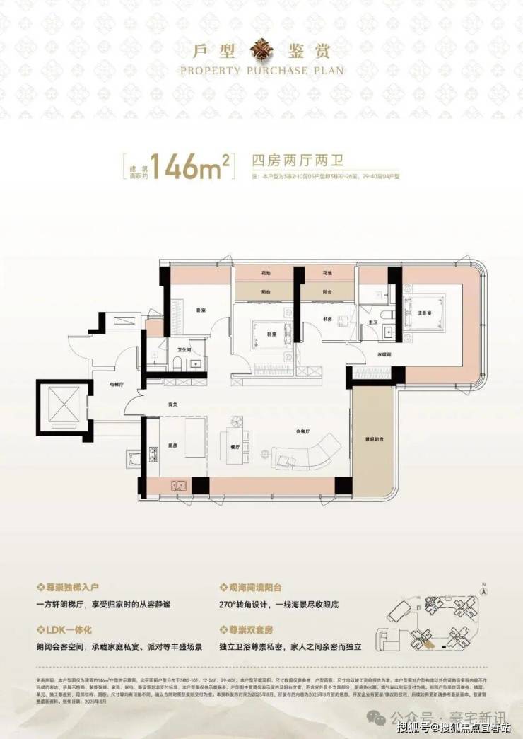 5、建筑面积约146㎡ 四房两厅两卫⛪美盛·梧桐印海售楼处电话:4008736605☎开发商已认证🌇🌇