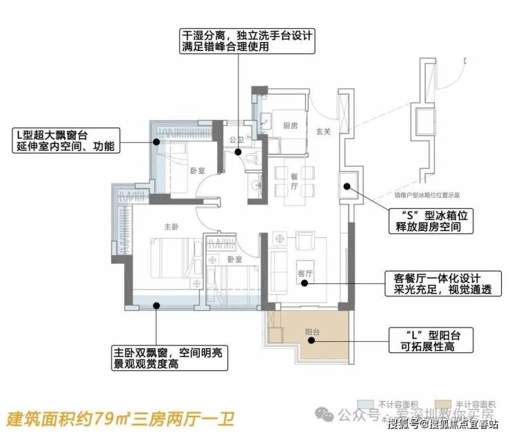 79㎡精致三房,东南,西南向,折后总价180-195万