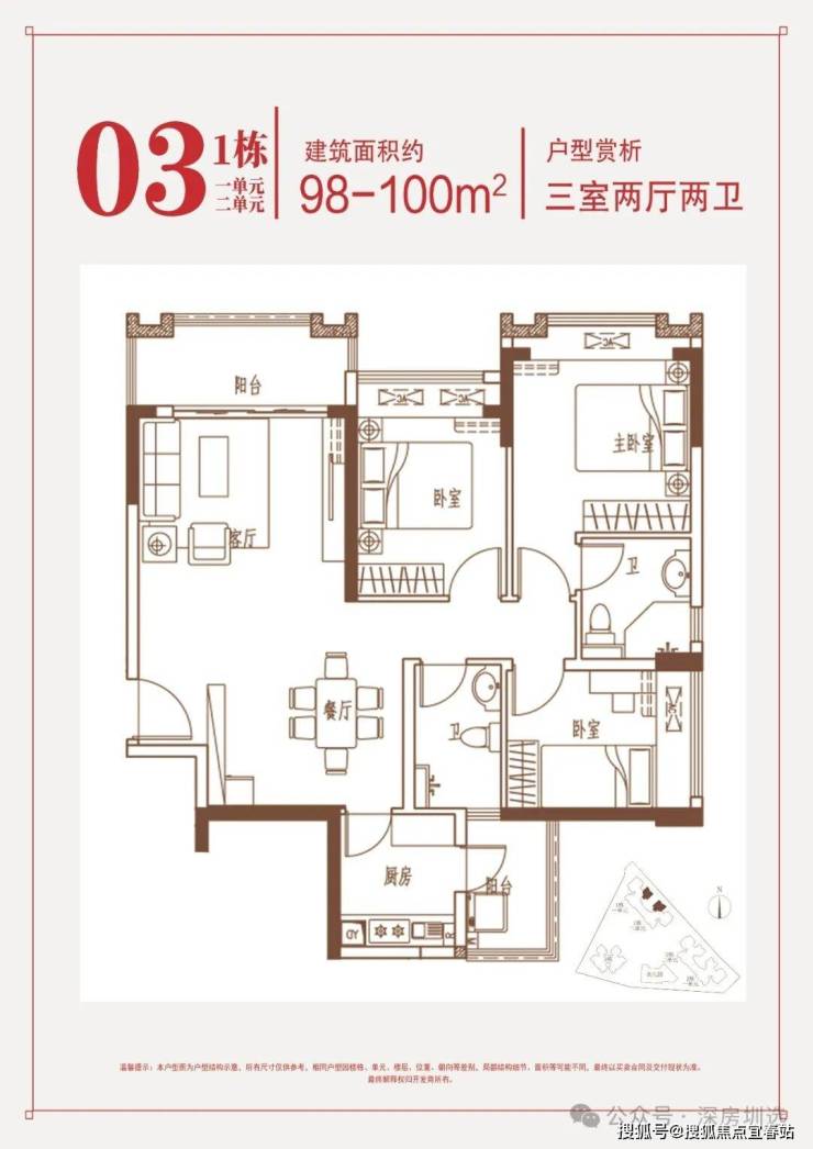 约98-100㎡三房:约3.8米阔绰大开间,视野开阔,全山景。