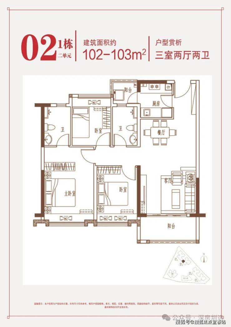 约102-103㎡三房:南北通透,花园中间更安静,北面看山南面看海。