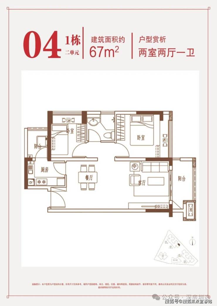 约67㎡两房:东南朝向,片区内唯一在售2房。