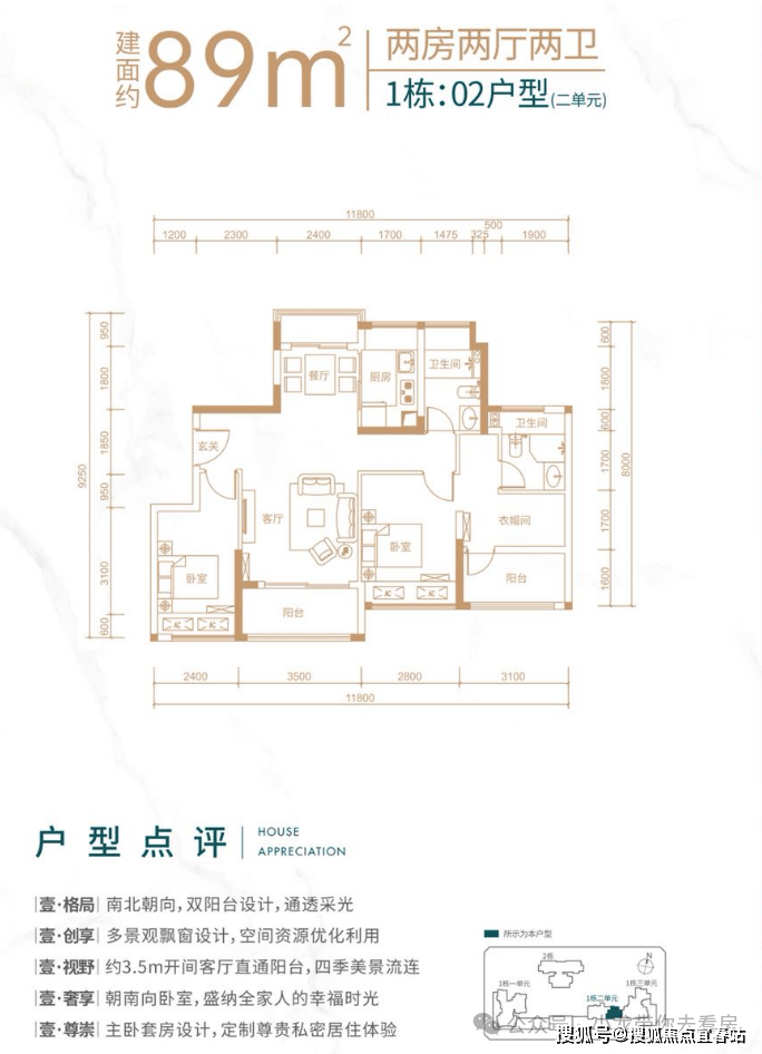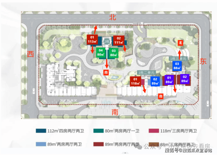面积:80-89㎡3房2卫,112-118㎡4房2卫