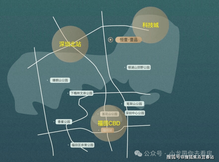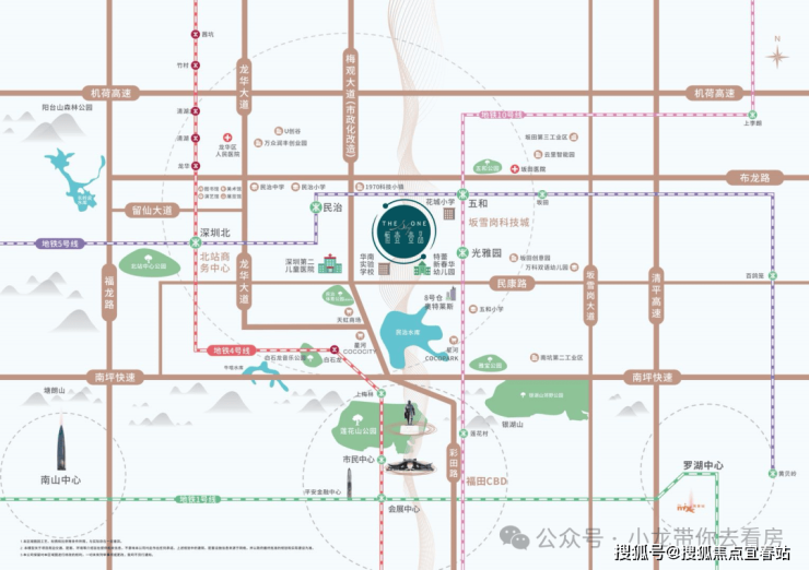 项目雄踞深圳中轴北段黄金区位,地处深圳北站商务中心、坂雪岗科技城、福田 CBD 三大核心板块交汇处。这里是城市资源的聚合点,教育、文化、生态、商业、娱乐休闲等多元价值在此交织,为居者勾勒出一幅远见卓识的美好未来生活画卷。