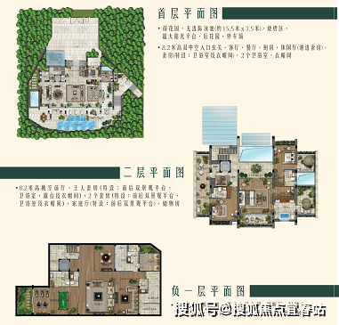 4室4厅9卫;地上二层,地下一层;单层净挑高4m;入户8.2m双挑高;带有电梯预留井;超大阳光平台;超大前入户花园,自带园林水系,双车位停车入户;私家泳池花园配30㎡独立泳池,活动平台,烧烤区;步行2分钟即可到达沙滩海边。