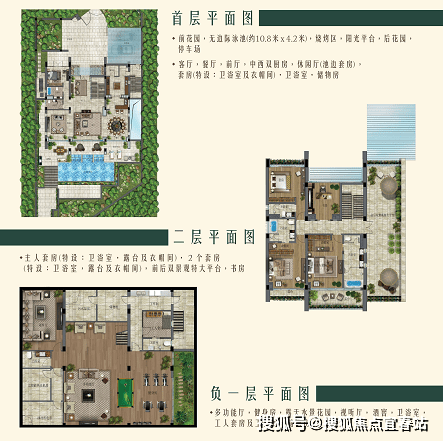 4室4厅6卫;地上二层,地下一层;单层净挑高4m;超大阳光平台;前入户停车花园,双车位;私家泳池花园层层叠加设计,配48㎡独立泳池,活动平台;烧烤区;前后花园设有独立入户门,业主可自由出入;步行2分钟即可到达沙滩海边。