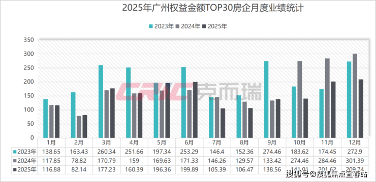 其中12月权益金额TOP30房企业绩规模209.74亿元,同比减少30%,环比增长4%,同时也是2025年以来TOP30房企房企月度业绩突破200亿元的第二个月。