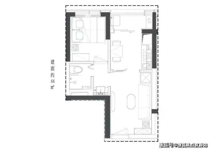 44㎡1房总价:280-300万 单价6.3-6.8万