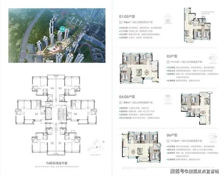 下面是4号楼的户型,两梯六户,面积有89-98-111-112