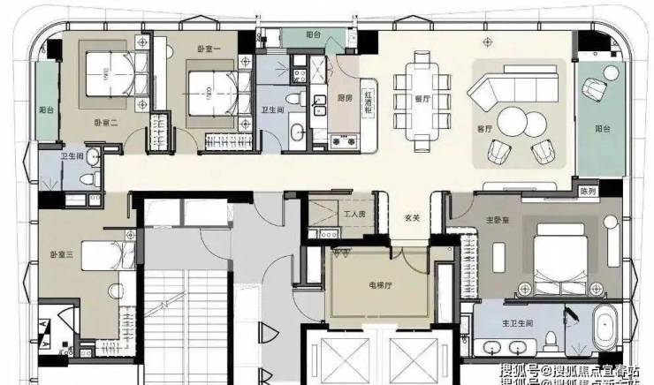 【 233户型 】4+1房2厅3卫 2梯2户