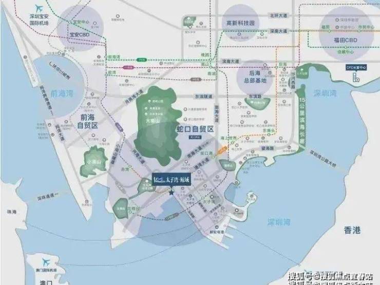太子湾片区规划总建筑面积约170万㎡,总占地约69万㎡,汇集办公、居住、商业、艺术中心、酒店等多元业态。以“一湾三坊城中城”概念打造布局,在独一无二的太子湾滨海区,汲取山、海、城三大元素,构建高端“居住坊”、“商业坊”、“港务坊”。凭借独树一帜的规划与强大的枢纽功能,成就高端元素集萃纷呈的“城中之城”。