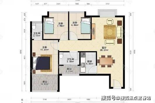 ◆户型:3房2厅2卫