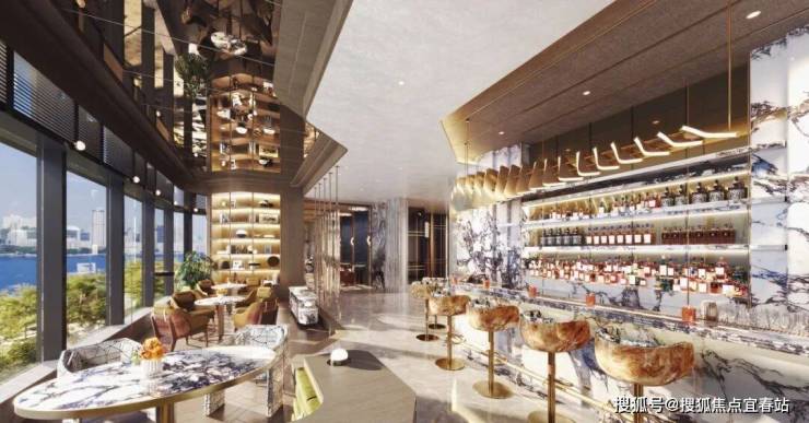 「天玺·海」会所上层特设海景餐饮空间,玻璃幕墙尽展临海风光;装潢时尚高雅,处处洋溢着奢华品味格调,住户可一边享受美食,一边饱览维港双海峡壮阔景色。
