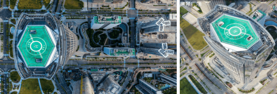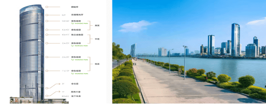 16.4米超高挑空阔绰大堂,挑高13.5米空中大堂WorKiongPark绿色组团,极致电梯速度,顶层云端观光厅,金融岛最大直升机停机坪,高标准停车位,设置总部及集群办公空间。